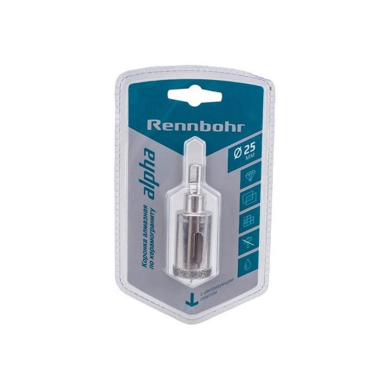 Коронка алмазная по плитке RENNBOHR 25 мм – подходит для мокрого сверления отверстий диаметром 25 мм в керамике и керамограните. С цилиндрическим хвостовиком, центрирующим сверлом и держателем, обеспечивает точность и комфорт в работе. Производитель – Danyang Hi-tech Tools Co. Ltd, Китай. Вес – 0.09 кг.