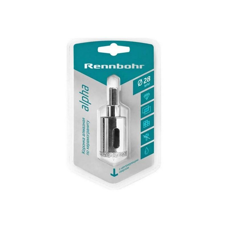 Коронка алмазная по плитке RENNBOHR 28 мм – предназначена для мокрого сверления керамики и керамогранита диаметром 28 мм. Комплектуется цилиндрическим хвостовиком, центрирующим сверлом и держателем для удобства и точности. Производитель – Danyang Hi-tech Tools Co. Ltd, Китай. Вес – 0.1 кг.