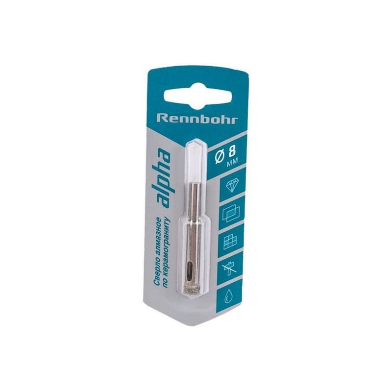 Коронка алмазная по плитке RENNBOHR 8 мм – предназначена для мокрого сверления в керамике, керамограните, стекле и граните. Диаметр 8 мм и цилиндрический хвостовик обеспечивают точное и аккуратное сверление. В комплекте центрирующее сверло и держатель. Производитель – Danyang Hi-tech Tools Co. Ltd, Китай. Вес – 0.01 кг.
