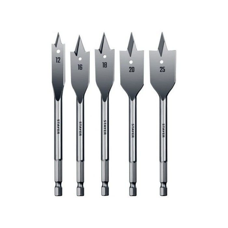 Набор сверл по дереву перовых STAYER 2950-H5, 12-25 мм (5 шт) – универсальный комплект для работы с деревом, включающий 5 перовых сверл диаметром 12, 16, 18, 20 и 25 мм. Сверла выполнены из инструментальной стали, обеспечивая высокую прочность и долговечность при частом использовании. Хвостовик 1/4 HEX (тип Е) гарантирует надежное крепление. Подходит для столярных работ и других задач по дереву. Вес: 0,238 кг. Производитель: Kraftool, Китай.