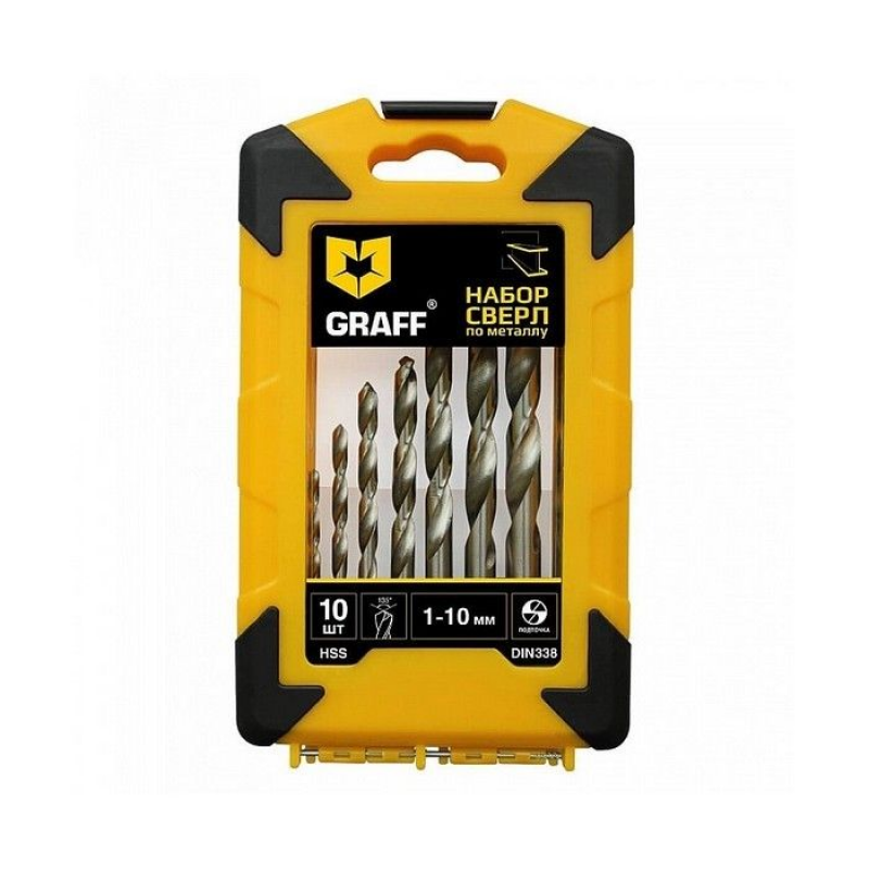 Набор из 10 сверл Graff изготовлен из быстрорежущей стали HSS методом вальцевания продольно-винтовой прокат c вышлифованной кромкой по стандарту DIN338. Сверла имеют цилиндрический хвостовик для работ с дрелью. Угол при вершине 135 градусов и крестовая подточка обеспечивают отличное сверление металла без предварительного засверливания. Предназначены для сверления отверстий в легированных и нелегированных сталях, ковких и серых чугунах.