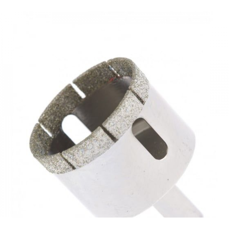 Сверло предназначено для стекла и керамической плитки, обеспечивает точное и чистое отверстие без сколов. Для повышения стойкости сверла, желательно использовать водяное охлаждение.