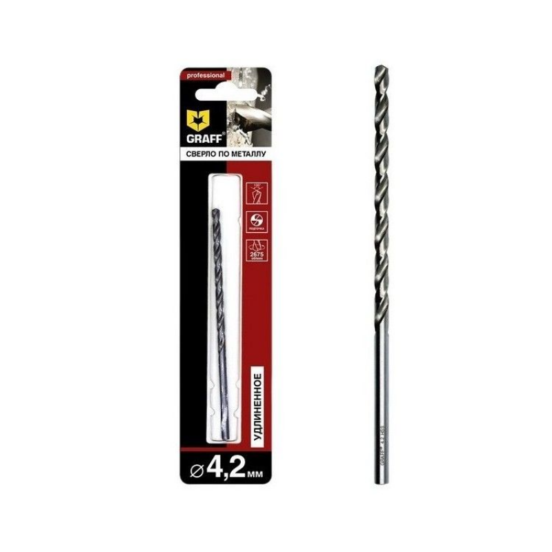 Сверло по металлу удлиненное GRAFF из быстрорежущей стали. Сверла данного типа будет надежным подспорьем для работ в труднодоступных местах или для сверления толстых материалов. Сверла GRAFF - это идеальный выбор соотношения цена - качество. Данные сверла имеют более высокий класс точности А1 благодаря вышлифованной кромке.Угол при вершине 135 градусов и крестовая подточка обеспечивают отличное сверление металла без предварительного засверливания. Удлиненные сверла изготовлены по DIN 340, ГОСТ 886-77, они отлично подходят для работы как на промышленных предприятиях, так и в небольших мастерских и подсобных хозяйствах.