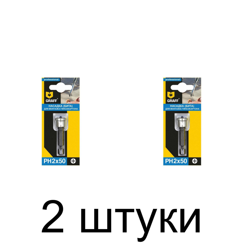 Бита GRAFF 350250 предназначена для шуруповертов. Применяется для монтажа/демонтажа крепежа, имеющего шлиц PH2. Насадка изготовлена из твердой марки стали с прокаливанием наконечника до твердости 60 HRC. Бита оснащена насадкой-юбочкой, ограничивающей глубину продавливания шляпки в лист гипсокартона.