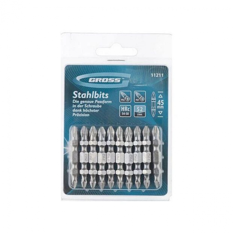 Корпус из японской легированной стали S2 — насадки отличаются высокой твердостью 54-58 HRC, прочностью и износоустойчивостью.Никелированное покрытие — биты обладают высокой коррозионной стойкостью.Высокоточное исполнение геометрии шлица повышает срок службы бит и не дает им проскальзывать в крепеже.Магнитные свойства — метиз насаживается на шлиц и надежно удерживается в нем, поэтому мастер может придерживать свободной рукой рабочую поверхность.Надежное сцепление с крепежным изделием — дополнительные насечки на ребрах бит повышают эффективность работы.Удобная упаковка — насадки поставляются в жестком блистере с европодвесом.Большой запас — 10 бит хватит надолго, их можно использовать для бригады работников.