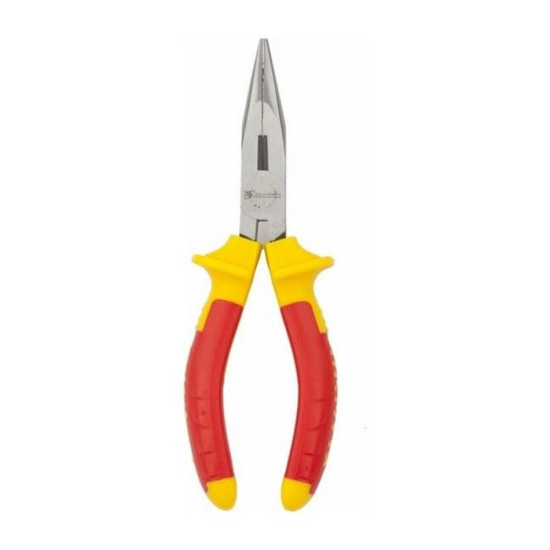 Диэлектрическое покрытие обеспечивает безопасность при работе с оборудованием под напряжением до 1000 В, что делает длинногубцы идеальными для электромонтажных задач. Инструмент сертифицирован знаком GS, что подтверждает его надёжность и безопасность. Двухкомпонентные рукоятки, выполненные из пластика и резины, обеспечивают удобный и надёжный хват, снижая усталость при длительном использовании.