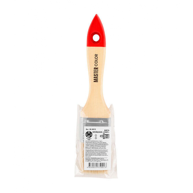 Флейцевая кисть MASTER COLOR 0012 шириной 35 мм для качественного нанесения лакокрасочных материалов. Оснащена натуральной щетиной, обеспечивающей равномерное распределение, и удобной деревянной ручкой для комфортной работы. Идеальна для обработки гладких поверхностей, покраски и лакировки.