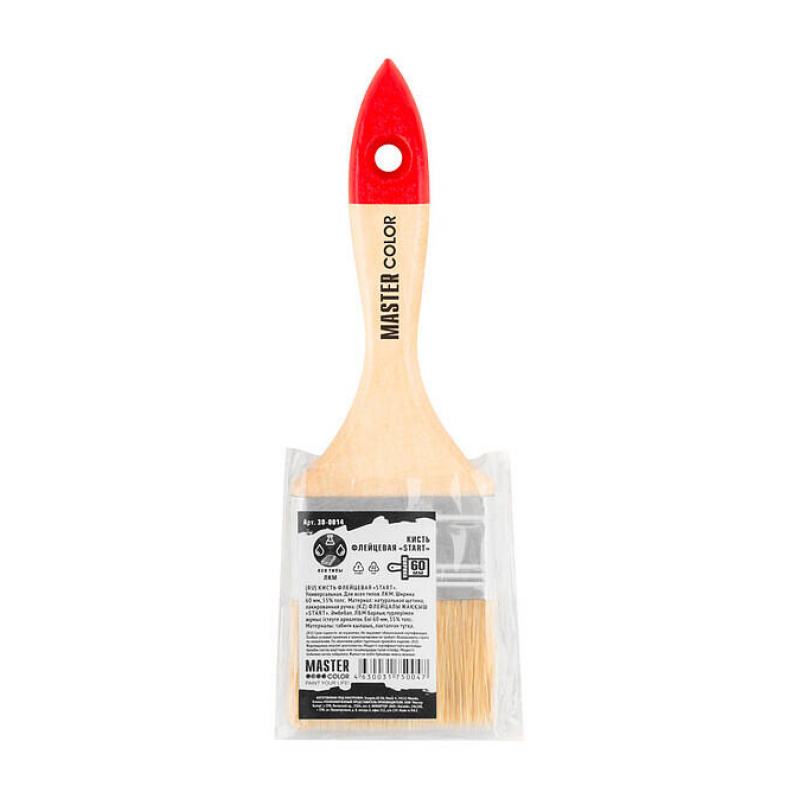 Флейцевая кисть MASTER COLOR 0014 шириной 60 мм для качественных малярных работ. Изготовлена из натуральной щетины, обеспечивающей равномерное нанесение и превосходное удержание ЛКМ. Деревянная ручка удобно лежит в руке. Идеальный инструмент для работы с масляными и водными красками, лаками и грунтовками.