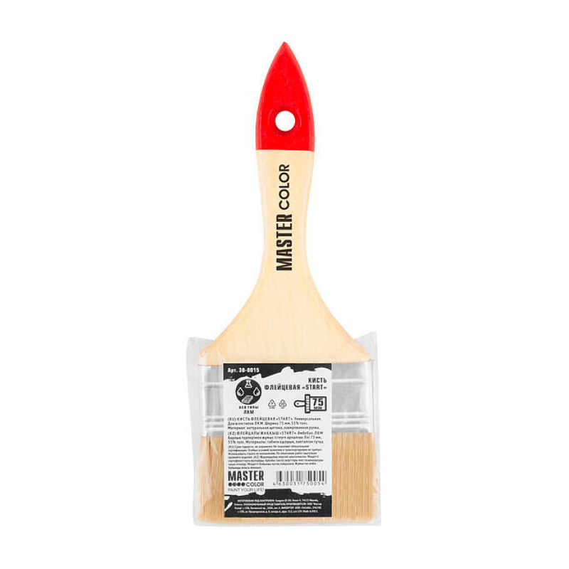 Флейцевая кисть MASTER COLOR 0015 шириной 75 мм — профессиональный инструмент для качественного нанесения лакокрасочных материалов. Изготовлена из натуральной щетины, которая обеспечивает равномерное распределение краски и лака по поверхности. Деревянная ручка удобно лежит в руке, позволяя работать длительное время без усталости. Идеально подходит для обработки ровных поверхностей и создания гладкого финишного покрытия.