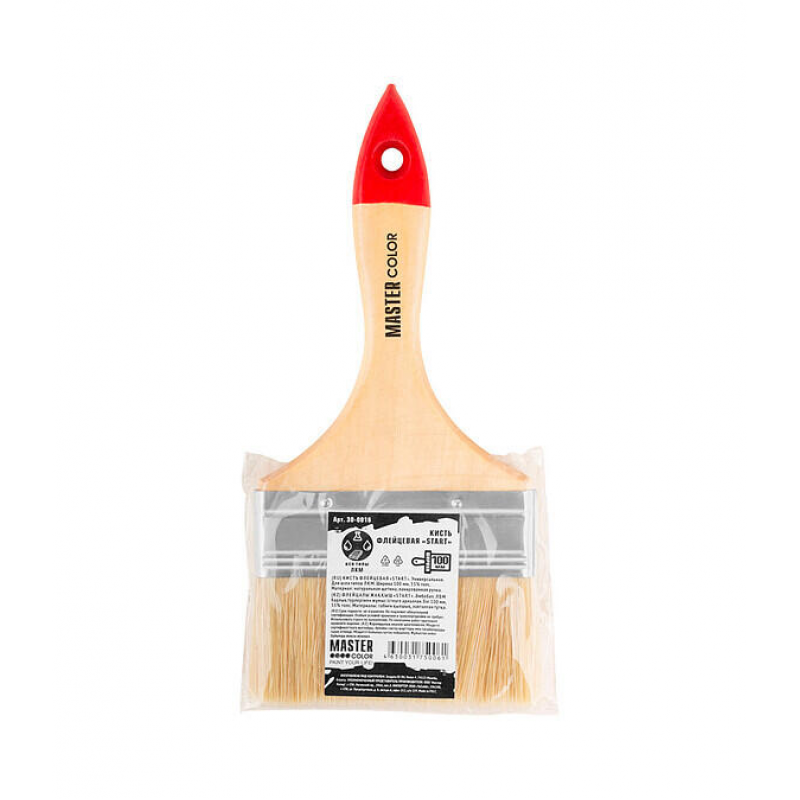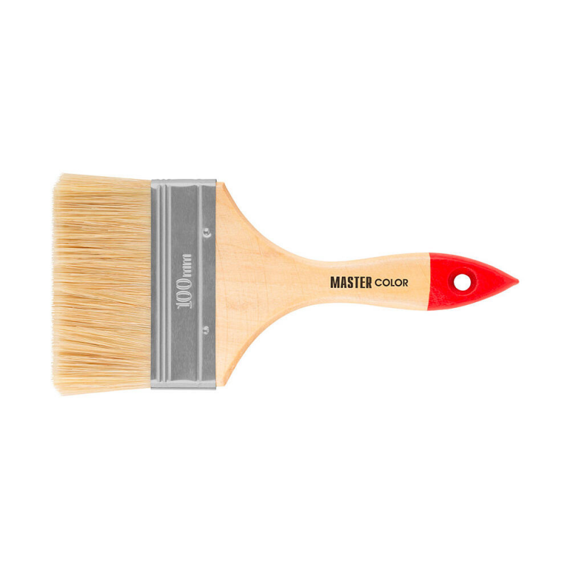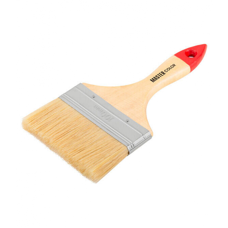 Флейцевая кисть MASTER COLOR 0016 шириной 100 мм для качественных малярных работ. Оснащена щетиной из натурального материала длиной 51 мм, обеспечивающей равномерное нанесение и хорошее удержание краски. Деревянная ручка удобно лежит в руке.