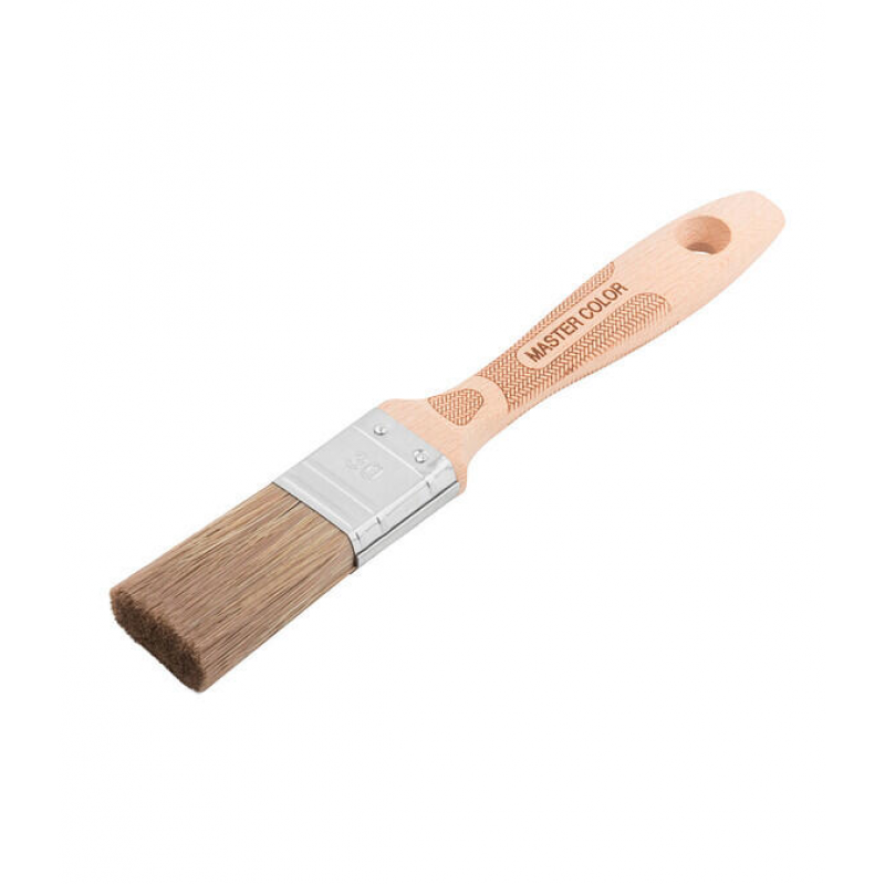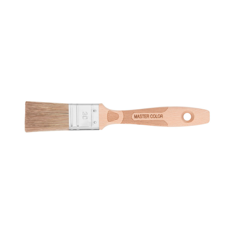 Кисть флейцевая MASTER COLOR 0021 из коллекции Pro предназначена для профессиональной работы с лазурями и другими лакокрасочными материалами. Ширина щетины 30 мм и длина 57 мм обеспечивают удобное нанесение покрытий на различные поверхности. Смешанная щетина из натуральных и искусственных волокон сочетает в себе лучшие качества: отличное удержание краски, равномерное распределение и долговечность. Деревянная ручка комфортно лежит в руке, позволяя работать длительное время без усталости. Инструмент подходит для нанесения лаков, морилок, глазурей и других декоративных покрытий на деревянные, металлические и другие поверхности. Качественное исполнение гарантирует чистоту работы без выпадания щетинок.