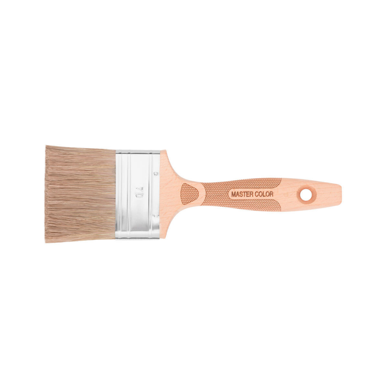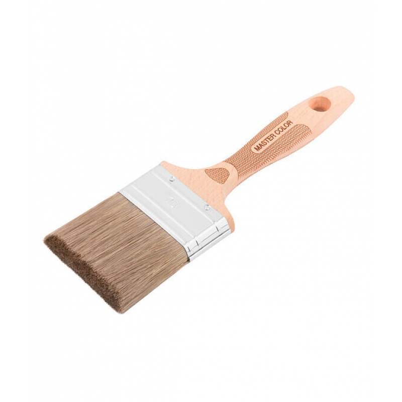 Флейцевая кисть MASTER COLOR 0025 из коллекции Pro предназначена для профессиональной работы с лазурями и другими жидкими лакокрасочными материалами. Ширина щетины 70 мм и длина 63 мм обеспечивают равномерное нанесение покрытия на большие поверхности. Смешанная щетина из натуральных и синтетических волокон сочетает в себе эластичность натурального ворса и долговечность искусственного, что позволяет качественно работать как с водными, так и с масляными составами. Удобная деревянная ручка обеспечивает комфортный хват во время продолжительной работы. Инструмент подходит для нанесения лаков, глазурей, морилок и других декоративных покрытий на деревянные, металлические и другие поверхности.