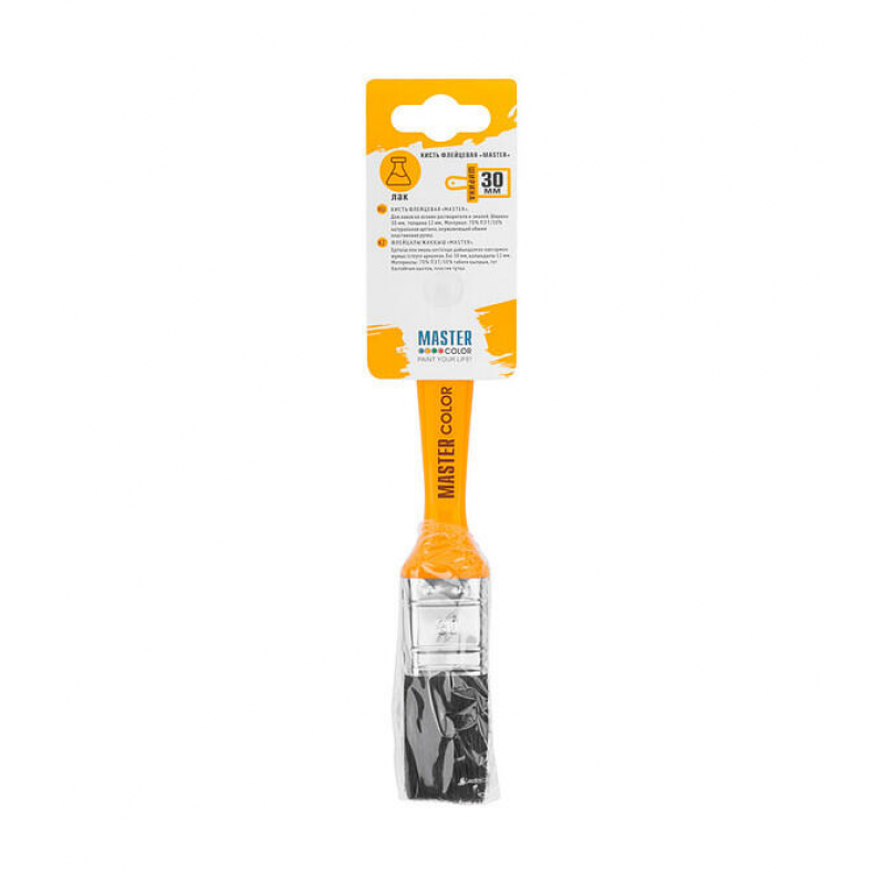 Флейцевая кисть MASTER COLOR 0161 шириной 30 мм для профессионального и бытового применения. Смешанная щетина (натуральная и синтетическая) длиной 44 мм обеспечивает качественное нанесение материалов. Эргономичная пластиковая ручка для комфортной работы.