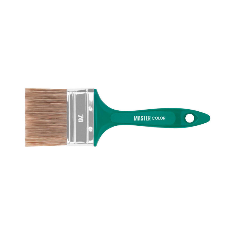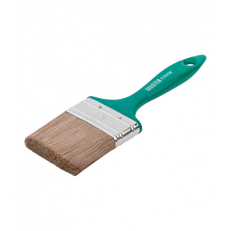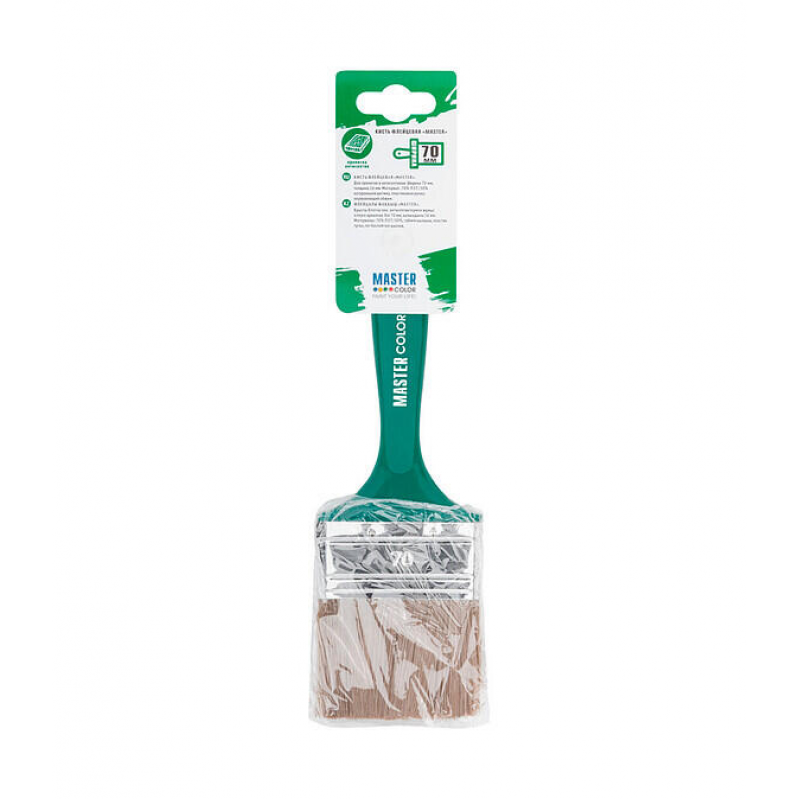 Флейцевая кисть MASTER COLOR 0234 шириной 70 мм предназначена для нанесения лазури, лаков и других защитно-декоративных покрытий. Щетина представляет собой оптимальную смесь натуральных и синтетических волокон, что обеспечивает равномерное распределение материала. Эргономичная пластиковая ручка комфортно лежит в руке.
