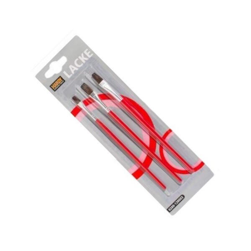Набор из трех кистей HARDY для точных работ и деликатного окрашивания. В комплекте кисти разного размера (7, 9, 10) с натуральной щетиной длиной 10, 15 и 18 мм. Деревянная ручка обеспечивает удобный захват.
