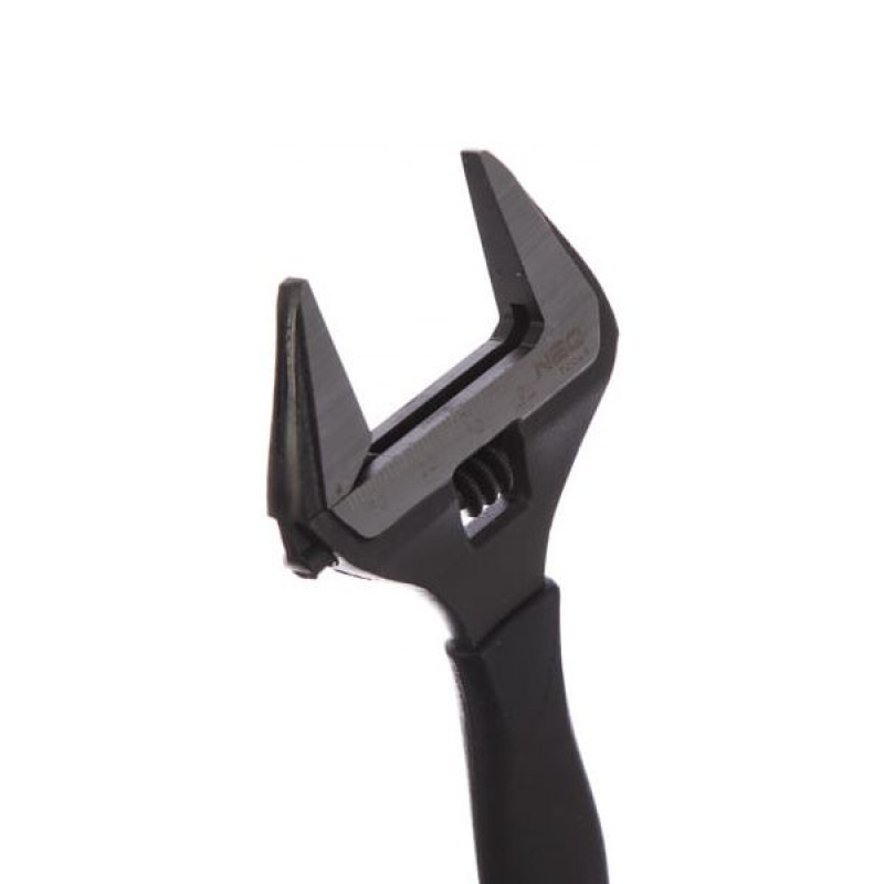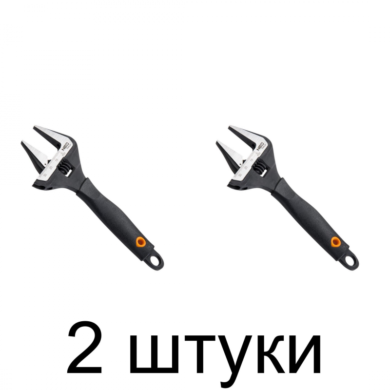 Ключ разводной NEO узкий 0-34мм, 150мм – это надежный инструмент, выполненный из прочной хромованадиевой стали (CrV), предназначенный для работы с крепёжными элементами различных размеров. Он имеет широкий рабочий диапазон губок, который на 40% больше, чем у стандартных ключей, что позволяет использовать его для более крупных крепежных элементов.
