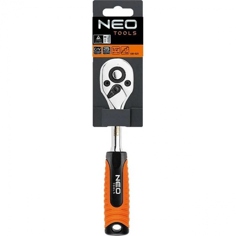 Ключ трещоточный NEO 08-521 1/2" 45 зубьев — это надежный и долговечный инструмент, который обеспечит точность и удобство при работе с крепежами в любых условиях.