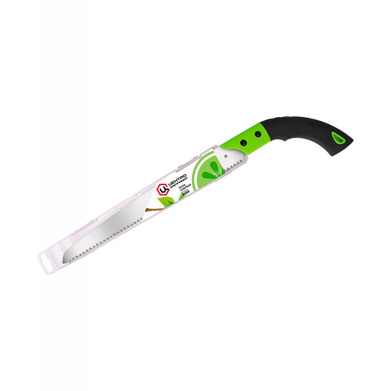 Садовая пила Центроинструмент с каленым полотном длиной 350 мм. Общая длина инструмента 495 мм, прямая форма лезвия, складная конструкция. В комплекте чехол, рукоять из прорезиненного пластика. Произведена ЦИТ ООО на Тайване, вес 0.12 кг.
