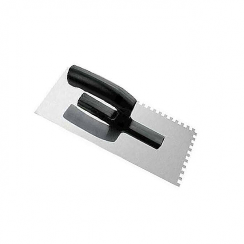 Гладилка BAUWELT для профессиональных и домашних работ. Полотно из нержавеющей стали размером 280x130 мм с зубцами 10x10 мм. Предназначена для нанесения и выравнивания плиточного клея, клея для блоков и других строительных смесей. Эргономичная пластиковая рукоятка обеспечивает удобный хват. Произведено в Польше.