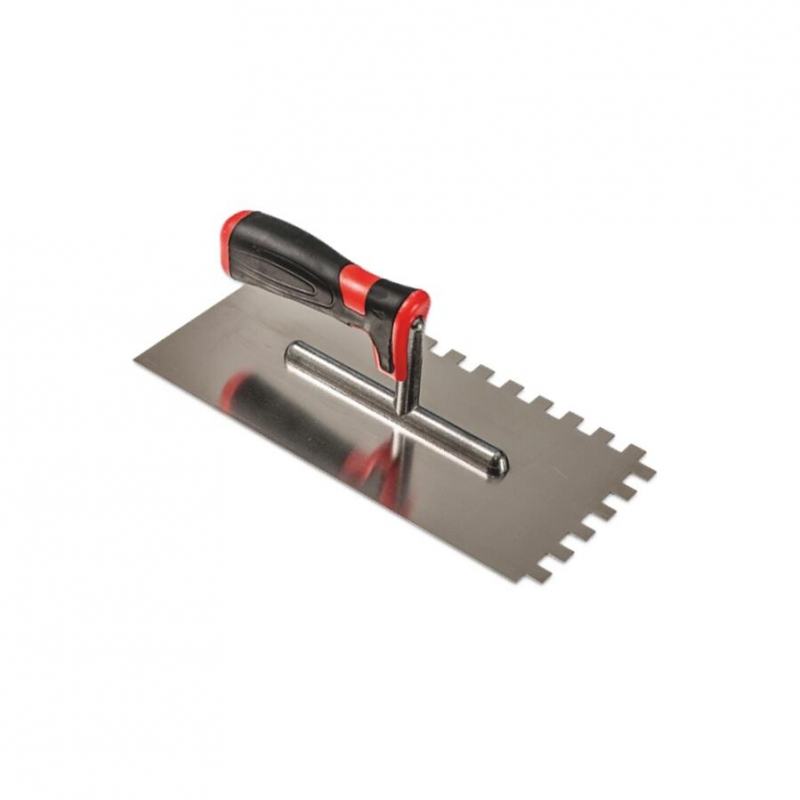 Прочное полотно из нержавеющей стали устойчиво к коррозии и износу. Двухкомпонентная рукоять уменьшает усталость руки и предотвращает скольжение. Квадратные зубцы 10х10 мм оптимальны для нанесения и выравнивания клея для плитки, штукатурки и других смесей. Инструмент обеспечивает профессиональный результат с ровным и эстетичным покрытием.