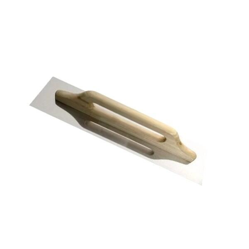 Металлическая гладилка BAUWELT с деревянной ручкой для профессиональных и бытовых отделочных работ. Полотно из нержавеющей стали размером 380x130 мм обеспечивает идеальное выравнивание и уплотнение штукатурных и шпаклевочных смесей.