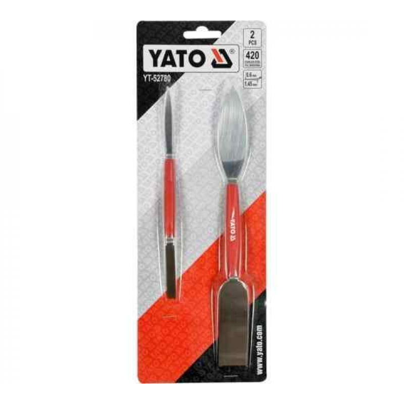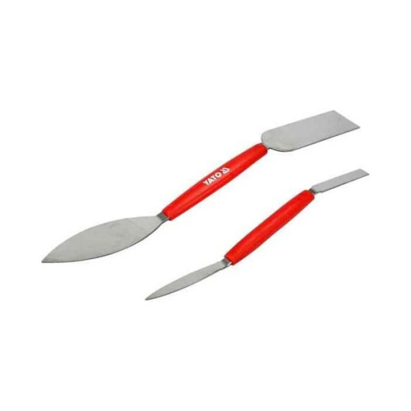 Профессиональный набор из двух двусторонних шпателей YATO для отделочных работ. В комплекте инструменты двух размеров: 8х192 мм (форма 'лист') и 26х254 мм (форма 'прямоугольник'). Рабочая часть изготовлена из шлифованной пружинной нержавеющей стали 420с/с толщиной 1,45-0,6 мм, оснащена удобной пластиковой ручкой для надежного хвата.