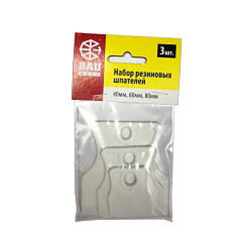 Набор из трех гибких резиновых шпателей BAUWELT шириной 40, 60 и 80 мм. Предназначен для профессиональных и домашних работ: шпатлевания криволинейных поверхностей, нанесения клеев, мастик, затирки швов и герметиков. Производство: Algoritm s.r.o. (Россия). Вес набора: 0.054 кг.
