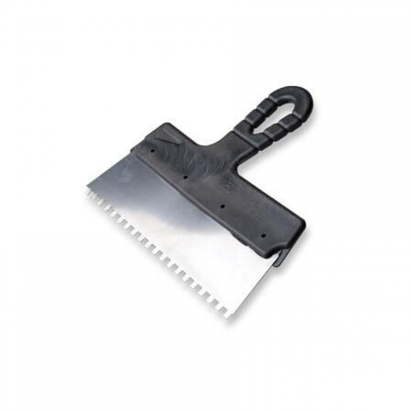 Коррозионностойкое лезвие из нержавеющей стали обеспечивает долгий срок службы. Эргономичная ручка из пластика гарантирует удобный и надежный хват. Идеальный размер зубца (8 мм) для равномерного нанесения материалов.