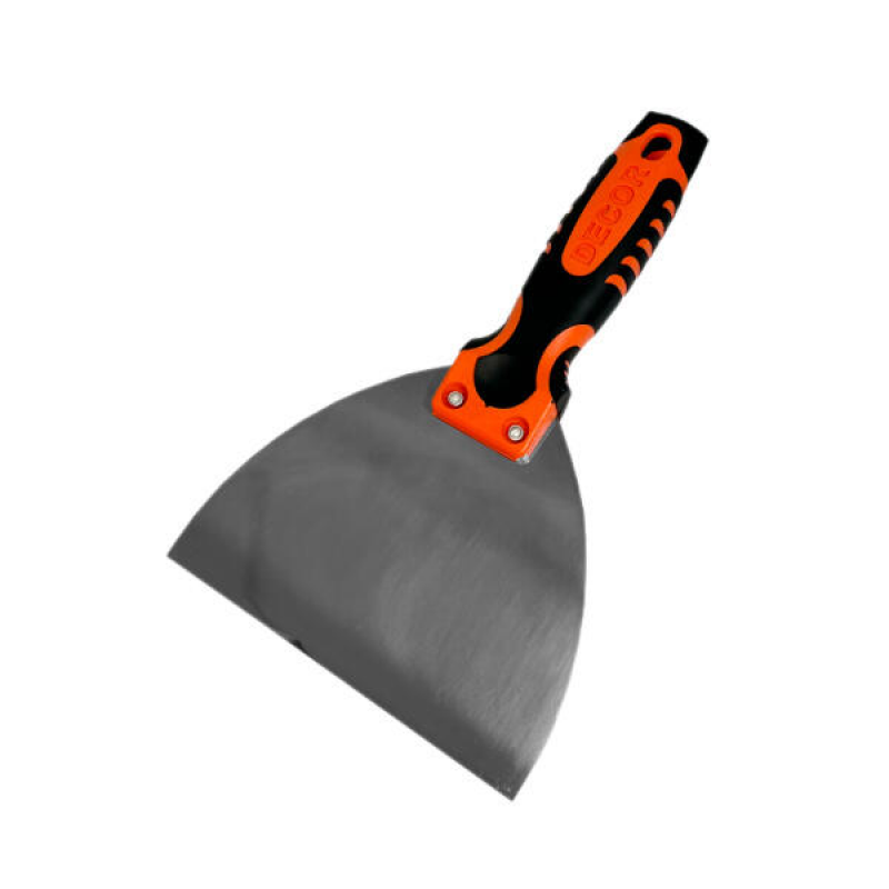 Шпатель-лопатка DECOR шириной 4 см для деликатных малярных и шпаклевочных работ. Изготовлен из высококачественной нержавеющей стали, которая не подвержена коррозии. Удобная двухкомпонентная ручка обеспечивает надежный хват. Произведен в России.