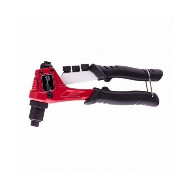 Заклепочник MATRIX Pro 40546 предназначен для соединения листового металла, различных тонкостенных конструкций и металлических профилей при помощи вытяжных заклепок. Трехсегментный цанговый зажим из Cr-Mo обеспечивает надежную фиксацию вытяжной шпильки. Инструмент укомплектован насадками для работ с вытяжными заклепками четырех диаметров 2.4, 3.2, 4.0, 4.8 мм. Длина инструмента 200 мм. Корпус заклепочника изготовлен из алюминиевого сплава. Эргономичные рукоятки для удобства в работе. Основные характеристики: Бренд: MatrixТип заклепочника: ОдноручныйТип заклепок: Вытяжные Размер заклепок: 2.4, 3.2, 4.0, 4.8 ммМатериал заклепок: Металл Длина заклепочника: 200 ммВес: 0.575 кг Производитель: МАТРИЗЕ Ханделс Гмбх Страна производства: КитайПреимущества:Прочная конструкция из алюминиевого сплава обеспечивает долговечность инструмента.Трехсегментный цанговый зажим из Cr-Mo обеспечивает надежную фиксацию. Укомплектован насадками для различных размеров вытяжных заклепок.Эргономичные рукоятки обеспечивают удобство в работе. Применение: Заклепочник MATRIX Pro 40546 идеально подходит для крепления деталей в автомобилестроении, мебельном производстве, ремонте бытовой техники и других областях, требующих надежного соединения материалов.