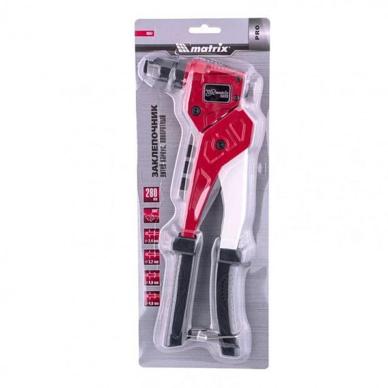 Заклепочник MATRIX Pro 40547 поворотный идеально подходит для крепления деталей в автомобилестроении, мебельном производстве, ремонте бытовой техники и других областях, требующих надежного соединения материалов.