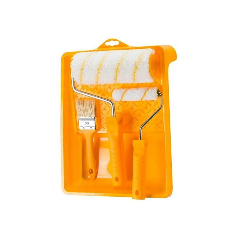 Набор предназначен для выполнения малярных работ с водоразбавляемыми красками. Используйте большой валик 18 см для покраски стен и потолков, а маленький валик 10 см - для обработки углов и труднодоступных мест. Флейцевая кисть идеально подходит для нанесения краски на плинтусы, оконные рамы и другие детали. Перед началом работы тщательно перемешайте краску в ванночке, равномерно пропитайте валик и удалите излишки краски о ребристую поверхность ванночки. Наносите краску плавными движениями в одном направлении для получения ровного покрытия. После использования промойте все инструменты водой.