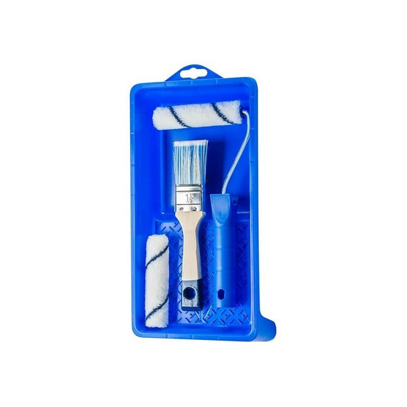Полный комплект для малярных работ; Подходит для эмульсионных красок и акриловых лаков; Качественные материалы изготовления; Удобная ванночка для равномерного нанесения; Компактность и мобильность; Европейское производство