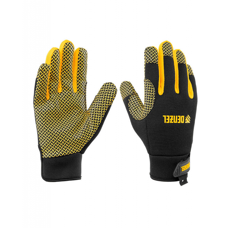 Универсальные комбинированные перчатки DENZEL 67999 размера L. Сочетание материалов обеспечивает надежный захват и долговечность. Произведены под контролем немецкой компании MATRIZE Handels GmbH.