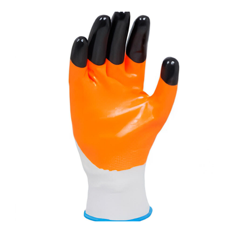 Нитриловое покрытие обеспечивает надежный хват и защиту от истирания. Черные напальчники повышают износостойкость в наиболее уязвимых зонах. Эластичная трикотажная основа повторяет форму руки для удобной работы.