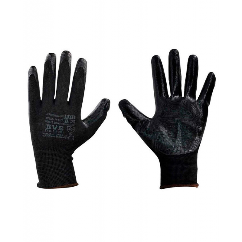 Прочные и эластичные трикотажные перчатки BVB TR-517B с нитриловым покрытием. Основа из полиэстера обеспечивает комфорт и воздухопроницаемость, а надежное нитриловое покрытие гарантирует отличный захват и защиту. Размер XL.