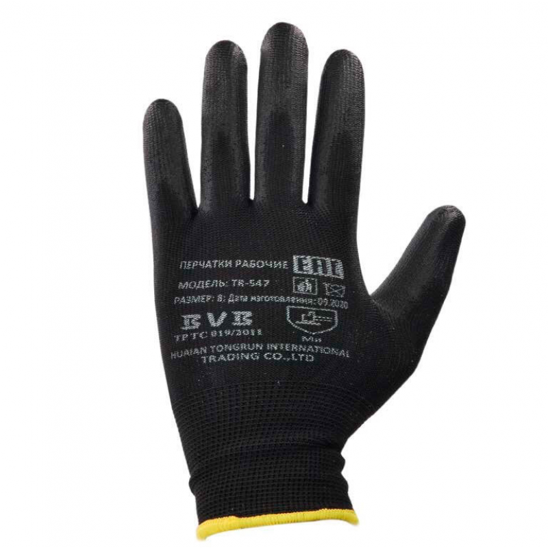 Прочные рабочие перчатки BVB TR-547 р10 размера XL. Модель изготовлена из эластичной полиэстеровой основы с надежным полиуретановым покрытием, обеспечивающим превосходный захват и защиту.