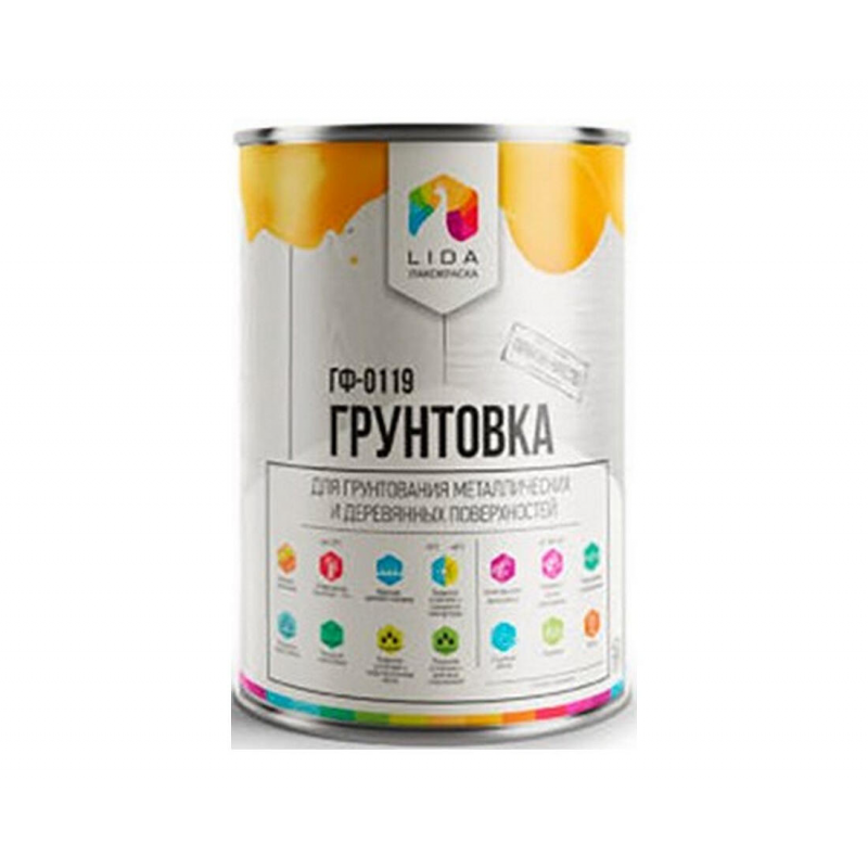 Грунтовка Lida ГФ-0119 красно-коричневая на алкидной основе для защиты металлических и деревянных поверхностей. Предназначена для подготовки оснований под покраску эмалями (пентафталевыми, глифталевыми, масляными) и обеспечивает временную антикоррозионную защиту крупных металлоконструкций на период монтажа и хранения. Подходит для внутренних и наружных работ.