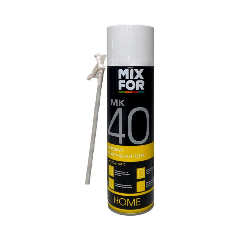 Идеальная для монтажа и ремонта! Бытовой монтажной пеной MIXFOR МК-40 вы надежно заполните щели, установите окна и двери, закрепите трубы или изолируете стыки. Всего 500 мл пены обеспечивают впечатляющий выход до 40 литров благодаря тонкому аппликатору в комплекте, который гарантирует точное нанесение и плотную структуру.