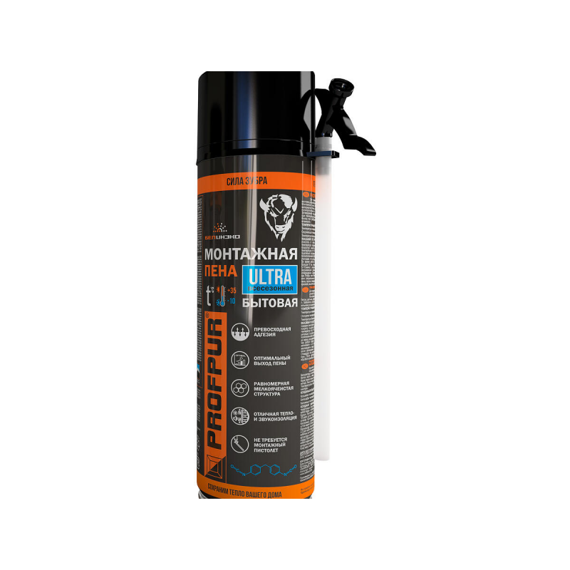 Комплектуется удобной трубкой-адаптером для простого применения без пистолета. Всего из одного баллона вы получите до 25 литров высококачественной пены! PROFPUR ULTRA — это надежность, универсальность и удобство от белорусского производителя для вашего комфорта внутри и снаружи дома.
