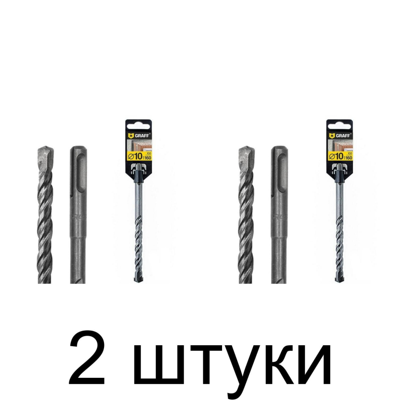 Сверло (бур) по бетону 10x100x160 мм GRAFF для перфоратора SDS-Plus. Вакуумная пайка наконечника из первичного карбида вольфрама позволяет сверлам по бетону GRAFF выдерживать большие нагрузки и справляться с максимально сложными задачами. Точно отцентрированная напайка позволяет получать максимально ровные отверстия в бетоне без вибраций при сверлении. Двойная канавка для еще лучшего отвода пыли
