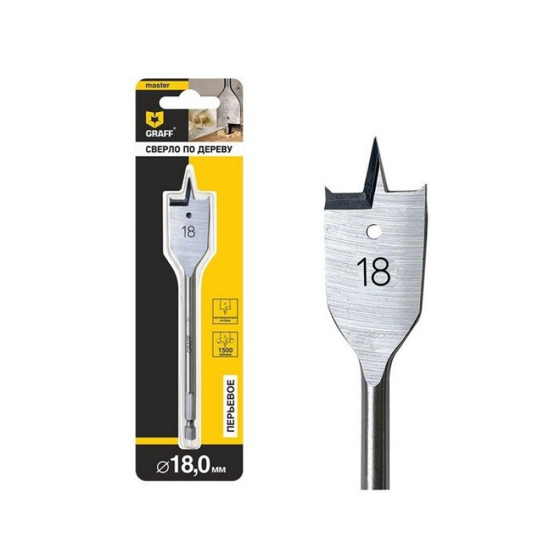 Сверло по дереву перьевое GRAFF диаметром 18 мм и длиной 150 мм предназначено для точного и аккуратного сверления в древесине. Изготовлено из прочной стали 45, что гарантирует долговечность и эффективность работы. Хвостовик 1/4 HEX (тип E) обеспечивает надежное крепление в патроне, а перовая форма позволяет создавать чистые и аккуратные отверстия. Это идеальный инструмент для столяров и домашних мастеров, которые ценят качество и надежность.