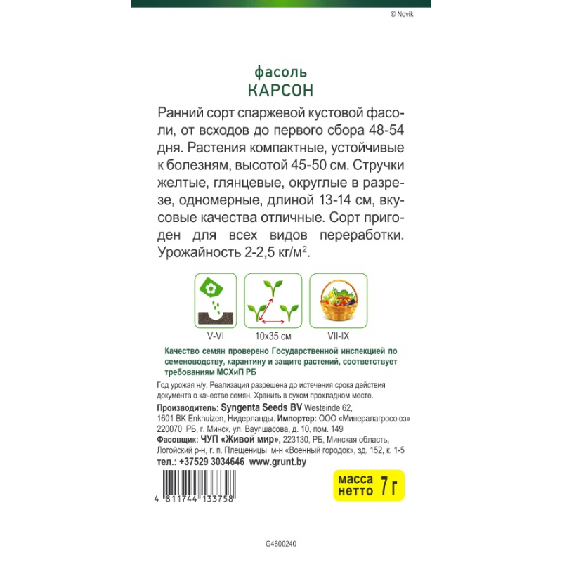 - Вид овощей/ягод:фасоль, фасоль спаржевая