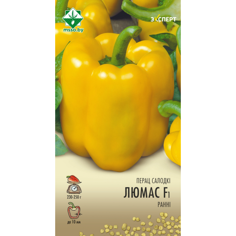 Ранний гибрид голландской селекции. Растение высотой 70-80 см. Плоды кубовидной формы, массой 230-250 граммов, в технической спелости – зелено-салатового, в биологической – уникального ярко-желтого цвета, исключительной товарности. Мякоть очень мясистая и сочная, со сладковатым вкусом и насыщенным ароматом, толщиной до 10 мм. Характеризуется отличной завязываемостью плодов. Универсального назначения. Для защищенного грунта. Качество семян проверено и соответствует Постановлению МСХиП РБ №37 от 29.10.2015г.