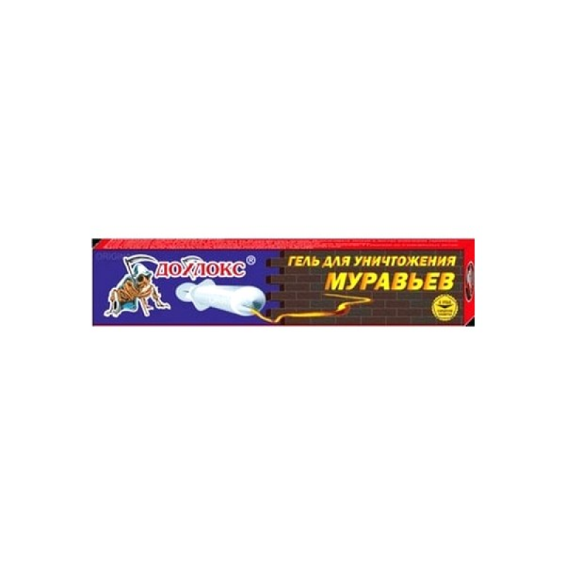 Гель «Дохлокс» позволяет эффективно и в короткие сроки избавиться от домашних муравьев. В составе приманки используется диазинон - сверхсильный инсектицид нового поколения. Запах очень слабый. Приманка, содержащаяся в геле, притягивает колонны муравьев. Важно, чтобы рабочие муравьи успели донести средство до гнезда или муравейника, где находится матка, а не умерли по дороге. Гель помещен в шприц, благодаря которому средство наносится аккуратно и точно. Не стекает с вертикальных поверхностей. Применяют гель следующим способом:Наносят несколько капель геля на подложки из картона или плотной бумаги на путях передвижения муравьев (дорожках), либо местах их скопления . Норма расхода 8-10 капель на 1 кв. м. Гибнут муравьи на 1-3 сутки. В отличие от борной кислоты, средство намного более эффективно. Недостатком можно считать то, что вещество во время процесса находится в открытом виде, что чревато возможностью отравления домашних животных.