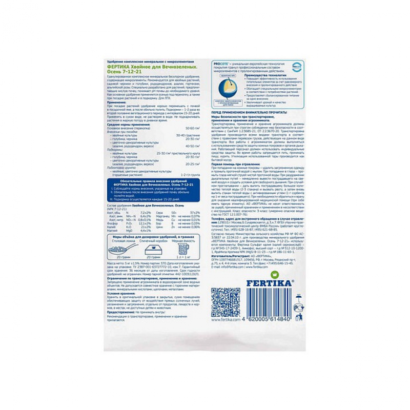 Удобрение FERTIKA минеральное "Хвойное Осень" (5 кг) — эффективное удобрение для хвойных растений и цветочных культур, поддерживающее оптимальный уровень pH почвы.