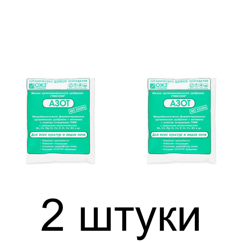Микробиологически ферментированное органическое удобрение + мочевина + эликсир плодородия ГУМИ с природными микро-элементами Mn, Ca, Mg, Fe, Cu, B, Zn, Сo, Mo и др. Порошково-гранулированное удобрение. Без хлора. Преимущества: повышает урожайность; повышает плодородие; сохраняет микрофлору почвы; улучшает качество продукции. Р асход: 0,5 кг на 100 л рабочего раствора при удобрительном поливе 100 м2; 0,5 кг под все культуры при внесении в почву при перекопке 10–20 м2.
