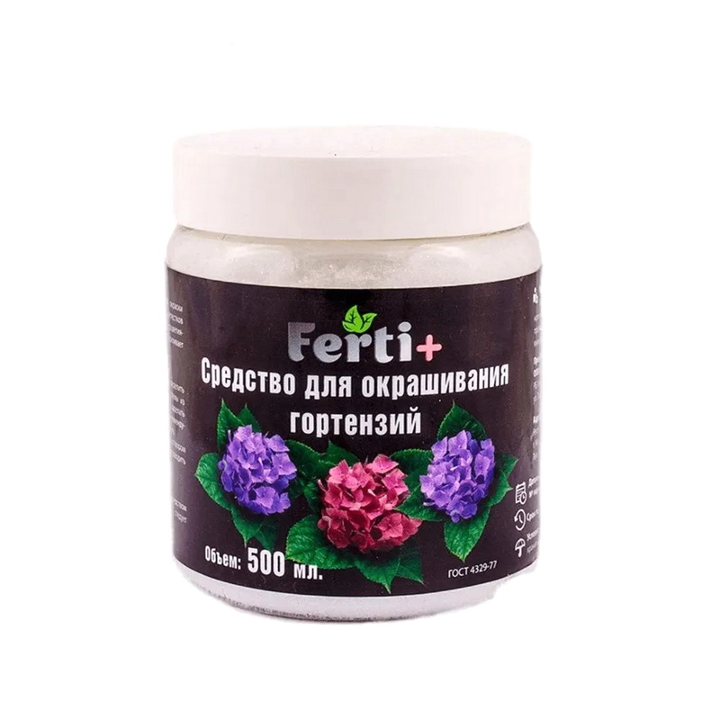 Средство применяется для воздействия на цвет окраски лепестков гортензии. Сорта с розовой окраской лепестков меняют свой цвет на красный, а сорта с голубыми соцветиями окрашиваются в фиолетовый. Средство усиливает окраску соцветия и придает насыщенность цвету. Способ применения:В сухом виде: необходимо равномерно распределить средство по площади разрастания корневой системы из расчета 30-40 грамм на 1м2. После этого следует заделать рыхлением и обильно полить водой. Подкормку рекомендуется производить 1 раз в неделю в течение цветения. В жидком виде: Проливать растение следует раствором 5 грамм средства на 1 литр воды. Подкормки проводить следует 1 раз в неделю.