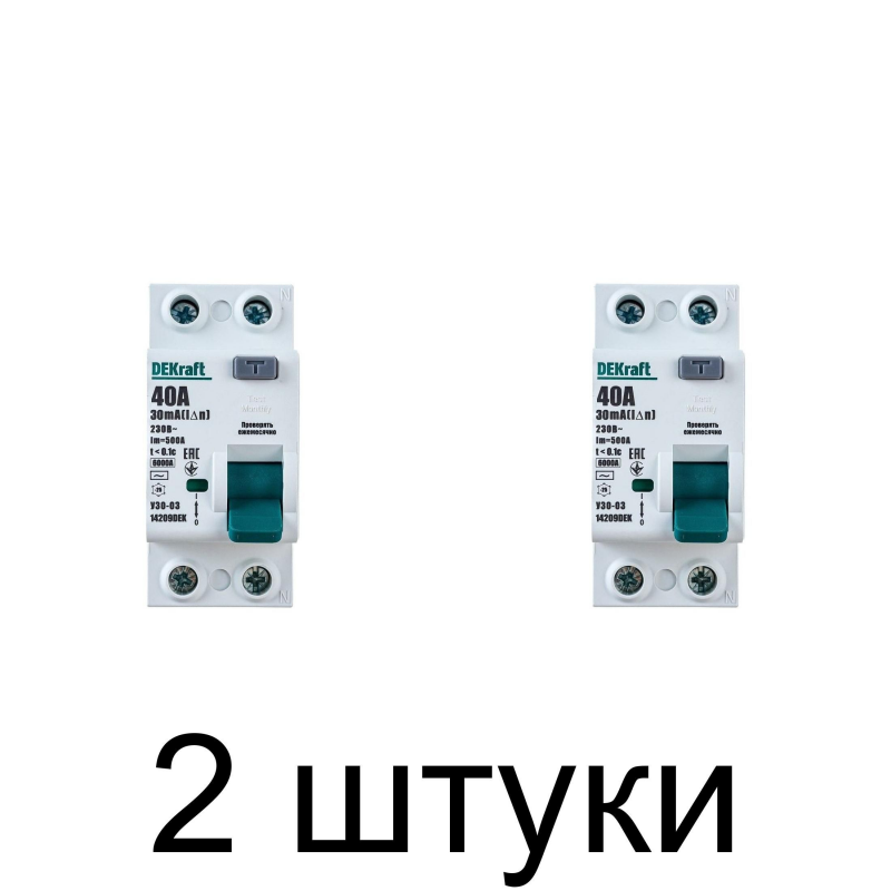 Устройство защитного отключения (УЗО) DEKraft 2П 40А/30мА – надежное устройство для защиты электрических цепей от утечки тока, предотвращая риск поражения током и возгорания. Оно рассчитано на номинальный ток 40 А и ток утечки 30 мА, что делает его подходящим для защиты высокомощных бытовых и коммерческих приборов.