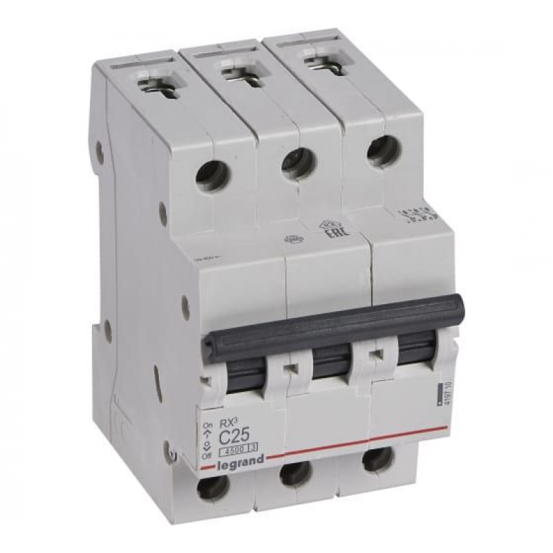Автоматический выключатель LEGRAND RX3 4500 3P 25А С 4,5кА (419710) выполняет защиту установок от перегрузок и коротких замыканий, обеспечивая их надежную и безопасную эксплуатацию.